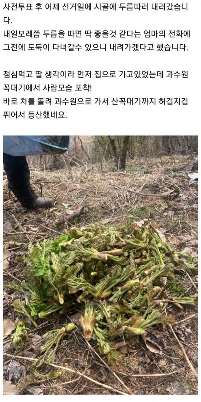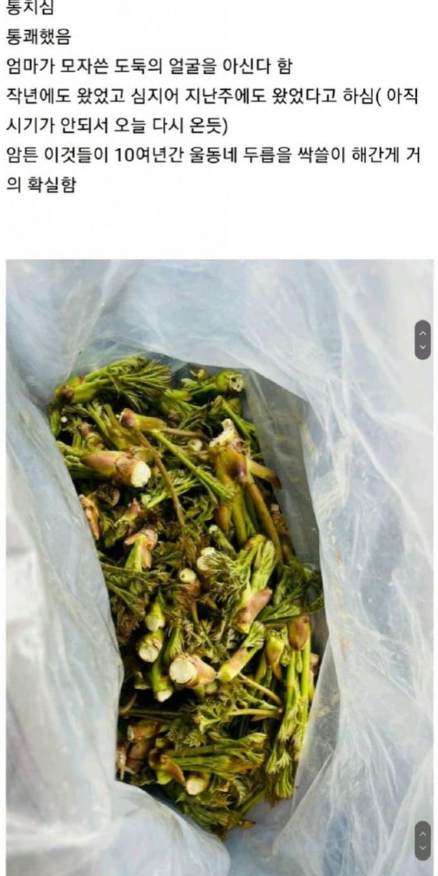 펌]10년 넘게 동네 두릅 서리하던 도둑년 잡았습니다