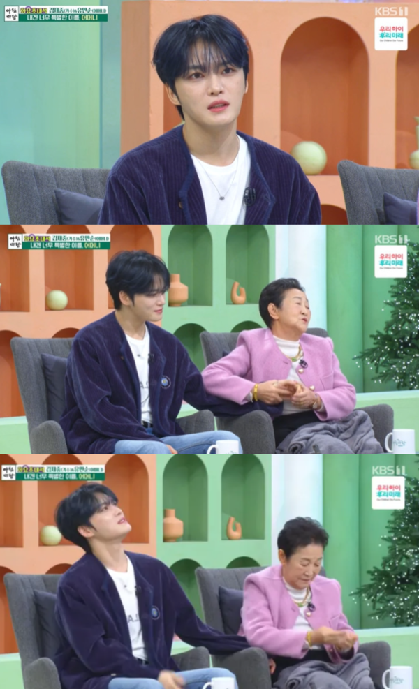 가수 겸 배우 김재중(37)이 크리스마스 이브인 24일 오전 KBS1 ‘아침마당’의 ‘화요초대석’ 코너에 어머니 유만순 씨와 함께 출연해 진솔한 이야기를 전하며 시청자들에게 감동과 웃음을 선사했다.