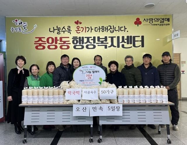 [와이뉴스] 오산시 중앙동은 지난 23일 오산민속 5일장이 관내 어려운 이웃들을 위해 떡국떡과 사골육수를 지원하며 따뜻한 나눔을 실천했다고 전했다.
