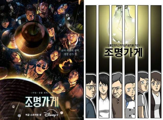 ‘조명가게’는 어두운 골목 끝을 밝히는 유일한 곳 ‘조명가게’에 어딘가 수상한 비밀을 가진 손님들이 찾아오면서 벌어지는 이야기를 그린 시리즈다. 강풀 작가는 ‘무빙’에 이어 ‘조명가게’까지 각본을 직접 맡아 원작보다 더 풍성한 이야기를 그려냈다.