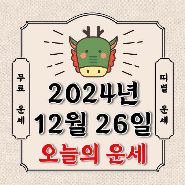 오늘의 운세 2024년 12월 26일 목요일 (음력 11월 26일 / 띠별 운세 / 생년월일 운세)에 대해 알아 보겠습니다.
