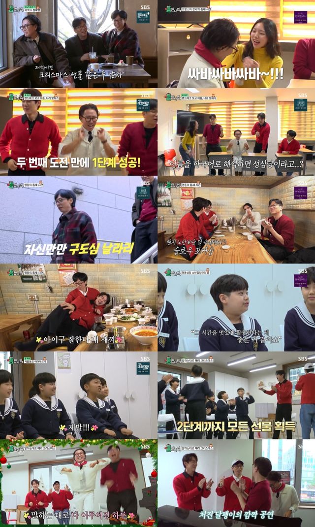 지난 24일 방송된 SBS ‘틈만 나면,’(연출 최보필/작가 채진아)은 일상 속 마주하는 잠깐의 틈새 시간 사이에 행운을 선물하는 '틈새 공략' 버라이어티. 17회에서는 유재석, 유연석이 ‘틈 친구’ 정재형, 이적과 함께 프랑스 어학원과 ‘무지카사크라’ 소년 합창단과 만나 연말을 더욱 따뜻하게 만든 웃음과 행운을 선물했다.