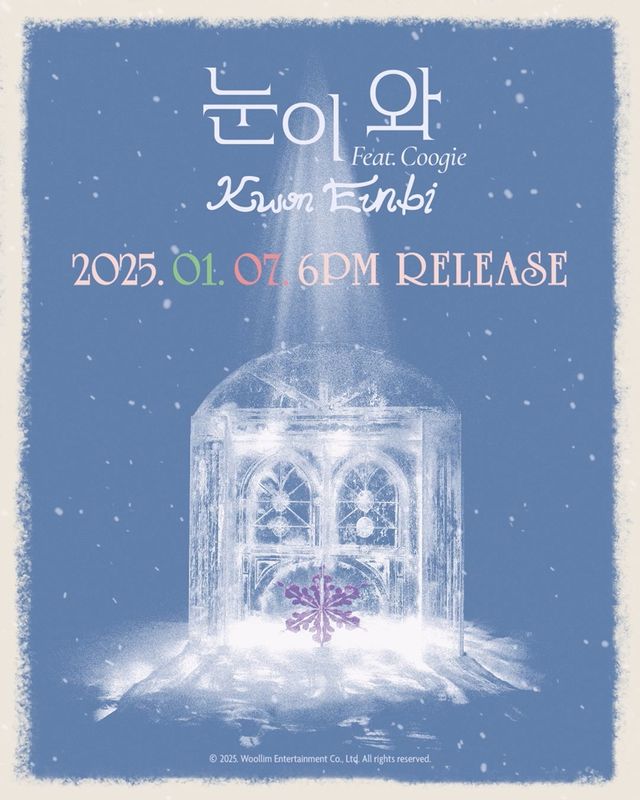 여기에 곡명 '눈이 와 (Feat. Coogie)'를 비롯해 피처링을 맡은 래퍼 쿠기(Coogie)의 이름이 공개됐고, 발매일시인 '2025.01.07', '6PM'이 함께 새겨져 있어 권은비의 새 음악을 기다려온 글로벌 팬들의 기대감을 한껏 끌어올렸다.