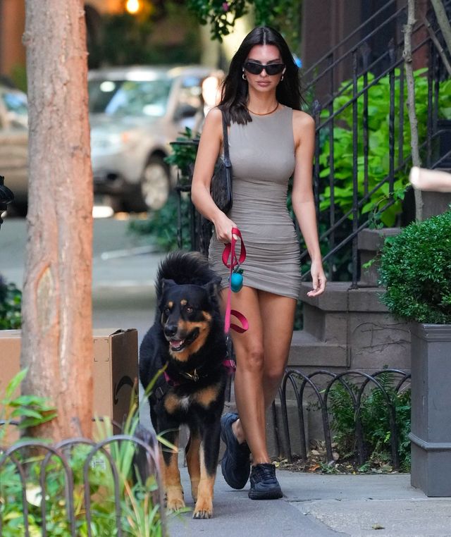 에밀리 라타이코프스키야 말로 성실한 도그워커의 모범답안이라고 할 수 있죠. 비가 오나 눈이 오나 반려견 산책에 진심인 에밀리에게 산책 룩은 그의 반려견 못지 않게 중요한 요소입니다. 미니멀한 그레이 미니 드레스와 블랙 스니커, 선글라스, 볼드한 이어링으로 군더더기 없이 멋스러운 산책 룩을 완성한 모습이군요.