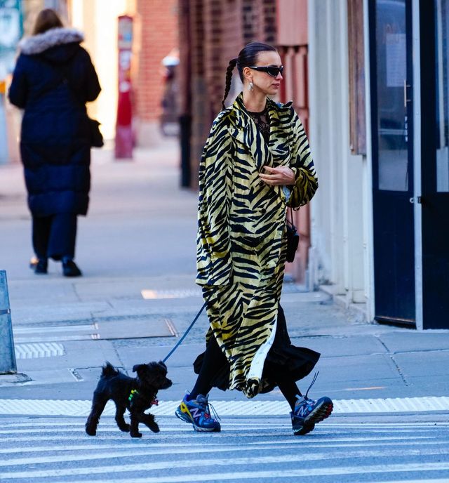 이리나 샤크 역시 그의 사랑스러운 반려견과 함께 자주 시간을 보내곤 합니다. 강렬한 타이거 프린팅 트렌치 코트와 강아지의 작디작은 몸집이 빚어내는 대비가 무척이나 사랑스럽군요.