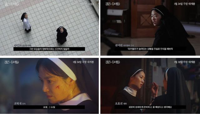 이어 영화에 현실감을 불어넣기 위한 제작진의 노력이 담겨 ‘검은 수녀들’만의 섬세한 연출에 대한 기대를 높인다. 김태성 음악감독이 “우리 일상의 이상한 순간들을 극대화하기 위해서 고민을 많이 했다”고 언급하고, 조화성 미술감독이 “익숙함이 무너져서 불편한 공간처럼 보이게 하는 게 좋겠다” 고 전한 만큼 일상 속의 균열을 디테일하게 표현해낸 음악과 미술은 관객들에게 익숙함과 이질감을 동시에 전하며 영화의 현실감을 극대화할 예정이다. 이처럼 캐릭터를 완성하기 위한 배우들의 노력과 섬세한 프로덕션 과정을 담은 ‘금지된 의식을 시작하다’ 제작기 영상을 공개한 ‘검은 수녀들’은 완성도 높은 볼거리와 색다른 이야기로 새해 극장가에 활력을 불어넣을 것이다.