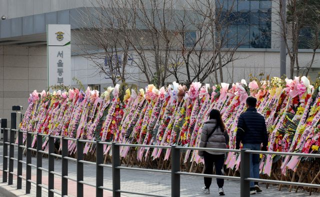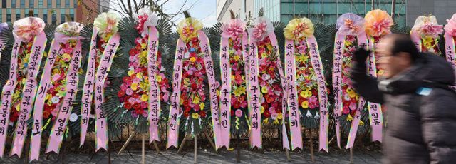 동부구치소뿐만 아니라 대통령실과 헌법재판소 앞에는 지난주부터 화환 행렬이 이어졌다.