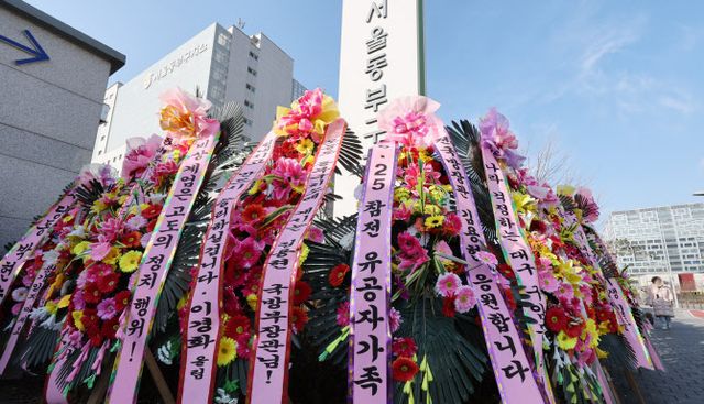 화환은 김 전 장관과 동기인 육군사관학교 38기와 군 교육기관 동문 명의로 보내졌고 보수단체부터 ‘광주광역시 한 시민’, ‘부산에 사는 엄마’ 등 개인 명의도 있었다.