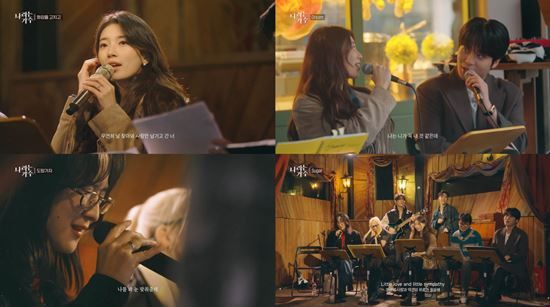 비에 젖어 더 운치 있는 거리에서 수지와 종호는 ‘Dream(드림)’으로 달콤한 듀엣 호흡을 맞춘다. 특히 각자 노래를 이어가던 두 사람은 눈을 마주치기만 하면 터지는 웃음을 참지 못하는 통통 튀는 케미스트리로 현장에 모인 관객들마저 미소 짓게 했다는 후문이다. 이에 종호는 “유쾌하고 재밌었다. 갑자기 수지 선배님이 누나가 될 줄 누가 알았겠느냐”라고 전해 두 사람의 무대에 기대감이 더해진다.