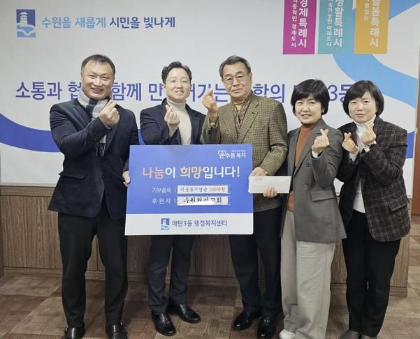 김승미 매탄3동장은 “김두열목사님과 수원천성교회의 꾸준한 관심과 지원 덕분에 우리 지역사회 곳곳에 따뜻한 변화가 일어나고 있다.”라며 “추운 겨울 도움이 필요한 이웃에게 잘 전달하겠다.”라며 감사를 표했다.