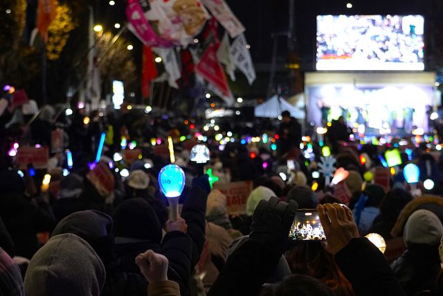 비상계엄 선포 이후 이어진 탄핵 집회의 주역이 돼온 청년 여성들은 이날 집회에서도 가장 큰 목소리를 냈다. 그들이 손에 쥔 '아이돌 응원봉'은 늦은 밤 시작한 이번 집회를 더욱 빛냈다. 현장에서 응원봉 모양의 LED 봉을 판매한 상인은 "윤석열이 응원봉을 무서워하는 이유는 절대 꺼지지 않기 때문"이라는 문구를 팻말에 적어둬 그 의미를 더하기도 했다.