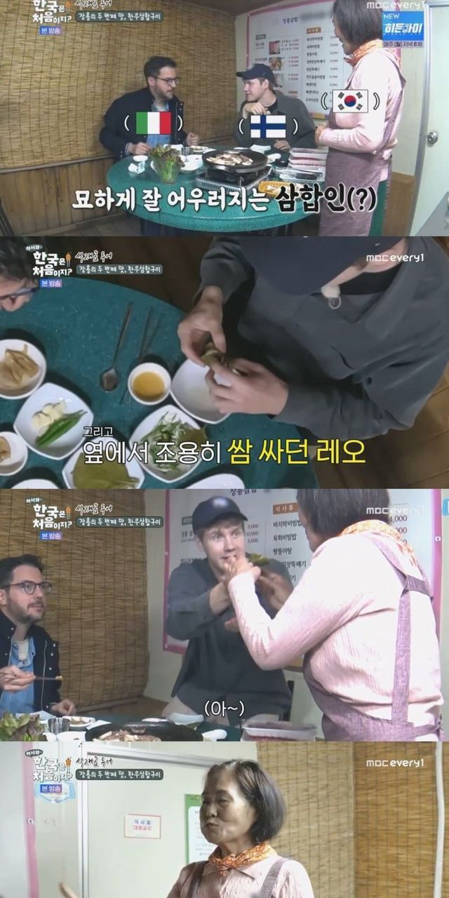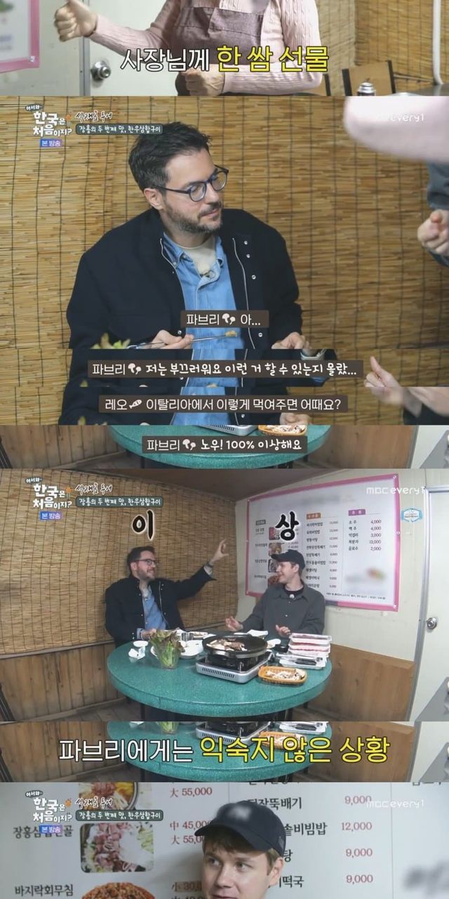 고기 구워준 사장님께 한우삼합 한쌈 드린 레오와 익숙지않은 파브리