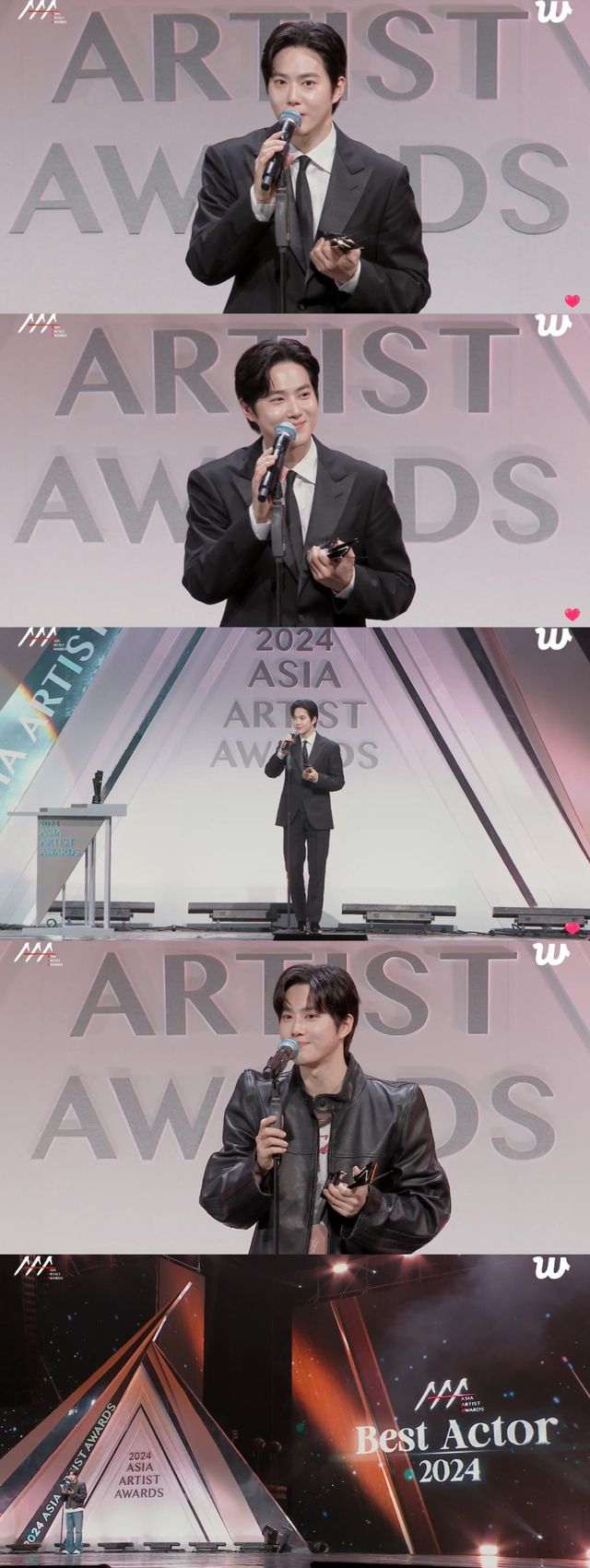 수호는 “작년에 배우로서 ‘AAA’에 함께 했었는데 올해는 배우이자 가수로서 초대받고 좋은 상까지 주셔서 정말 행복하다. 엑소엘(팬덤명) 여러분들 진심으로 사랑하고 감사드린다”고 소감을 밝혔다.