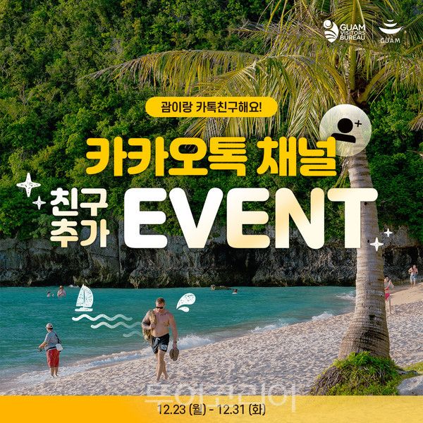 참여 방법은 카카오톡 검색창에 ‘괌정부관광청’ 검색 후 채널 추가하고, 괌정부관광청 공식 인스타그램 프로필 링크를 통해 채널 추가 인증 캡처본을 제출하면 된다. 당첨자는 2025년 1월 7일에 괌정부관광청 공식 인스타그램에서 발표될 예정이다.