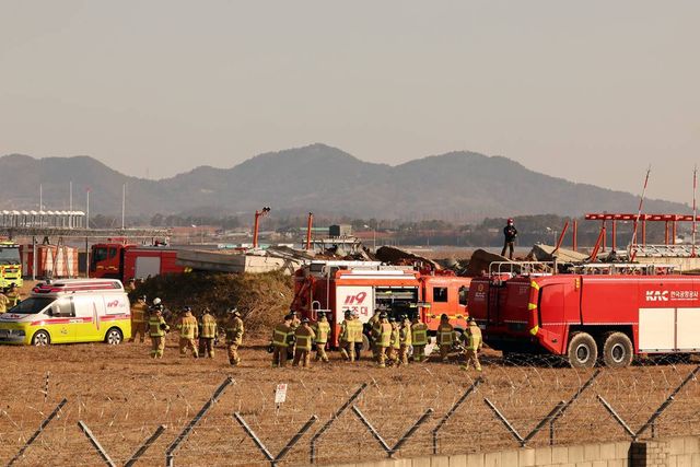 무안공항 사고현장 드나드는 구조대...29일 오전 전남 무안국제공항 활주로에 여객기가 추락해 사고 수습이 이뤄지고 있다. 이날 오전 9시 7분쯤 승객과 승무원 181명을 태운 태국발 제주항공 7C2216편 항공기가 무안공항 착륙을 시도하던 중 활주로 외벽에 부딪혀 폭발했다 / 뉴스1