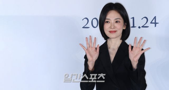 배우 송혜교가 16일 오전 서울 용산구 용산CGV아이파크몰에서 열린 영화 '검은 수녀들' 제작보고회에서 포즈를 취하고 있다.'검은 수녀들'은 강력한 악령에 사로잡힌 소년을 구하기 위한 사람들의 이야기를 그린 영화. 내달 1월 24일 개봉.서병수 기자 qudtn@edaily.co.kr /2024.12.16/