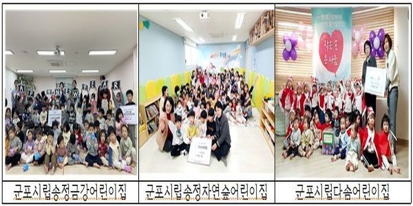 [와이뉴스] 군포시 송부동에 위치한 군포시립송정금강어린이집, 군포시립송정자연숲어린이집, 군포시립다솜어린이집에서는 연말연시를 맞아 아이들의 마음이 담긴 사랑의 동전을 모아 어려운 이웃에게 따뜻한 나눔을 실천했다.
