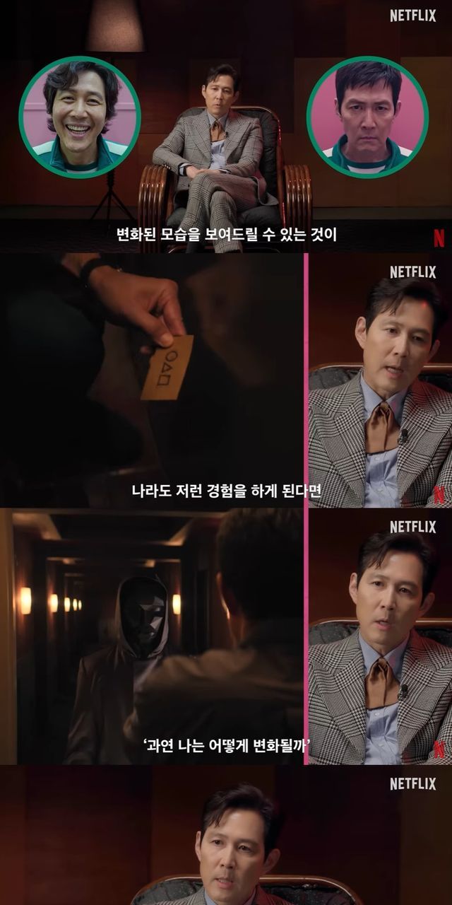 이정재는 "성기훈이 시즌1 시즌2에 캐릭터를 변화된 모습 보여드릴 수 있는 게 저로서도 상당히 즐겁게 연기할 수 있는 부분이지만 관객도 상당 부분 인정해주실 거 같다. 나라도 저런 경험 하면 어떻게 변화할까를 상상하실 수 있다"고 이야기했다.