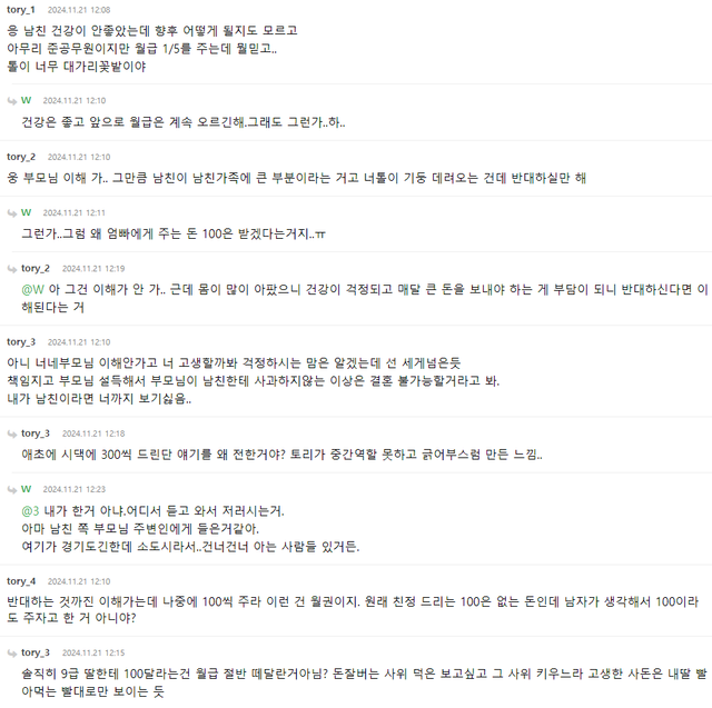 남자가 첨부터 300 : 300 으로 하자고 했으면 방긋 웃으며 '우리 사위~' 이랬을 거 같은데...