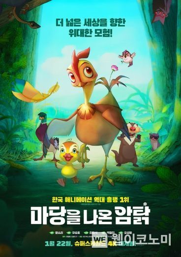 (웹이코노미) 역대 한국 애니메이션 흥행 1위 자리를 차지한 '마당을 나온 암탉'이 2025년 1월 22일 슈퍼스케일드 4K 개봉을 확정 짓고 메인 포스터와 예고편을 공개했다.[제작: 명필름, 오돌또기 | 배급: 메가박스중앙㈜ | 슈퍼스케일드 4K: 주식회사 인쇼츠 | 감독: 오성윤]