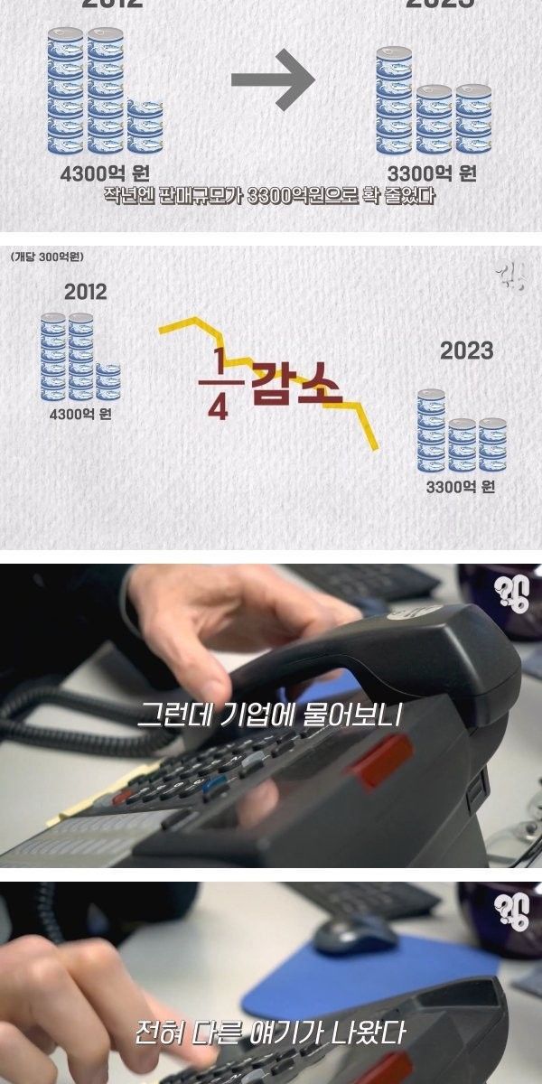 1. 참치캔 판매량이 줄었다는 통계가 나옴