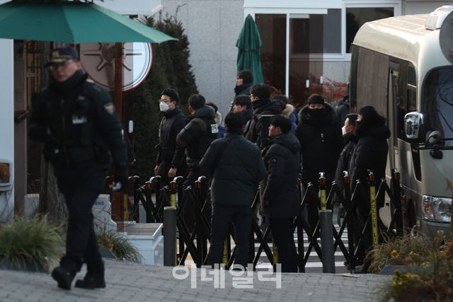 12·3 비상계엄 사태로 내란 혐의를 받고 있는 윤석열 대통령에 대한 체포영장의 집행이 임박한 3일 오전 서울 용산구 한남동 대통령 관저 앞에서 공수처와 경찰들이 정문을 통과하고 있다. (사진=이데일리 이영훈 기자)