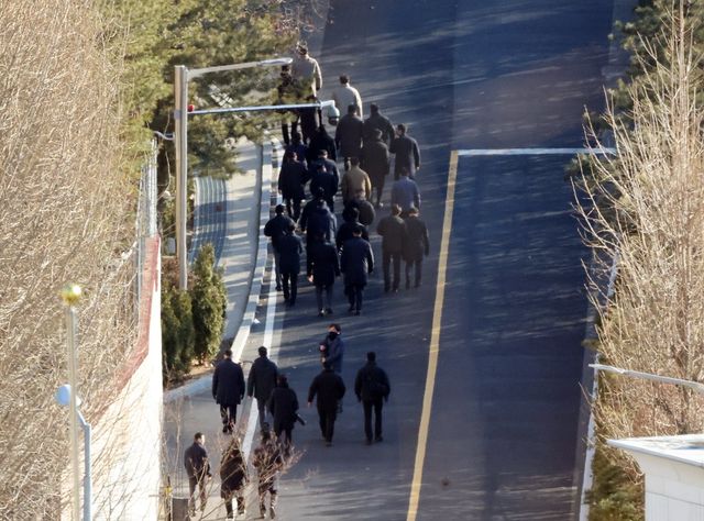 고위공직자범죄수사처(공수처)가 윤석열 대통령의 체포영장 집행에 나선 3일 오전 서울 용산구 한남동 대통령 관저 경내 모습 / 연합뉴스