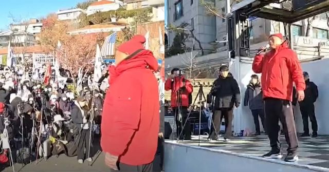 가수 김흥국이 2일 대통령 관저 인근에서 열린 보수단체 집회에 참석해 윤석열 대통령 체포를 저지해달라고 당부하고 있다. / 국민계엄 유튜브 영상 캡처
