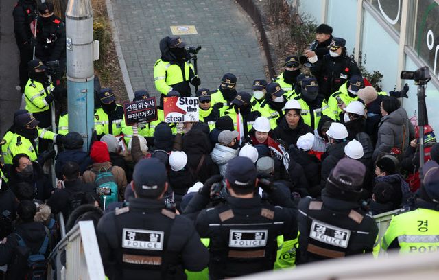 3일 서울 용산구 한남동 대통령 관저 입구에서 윤석열 대통령 지지자들이 경찰과 실랑이하고 있다. (사진=연합뉴스)