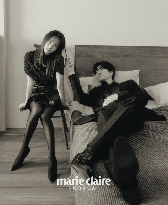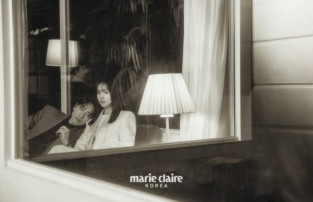 이준혁 배우님은 커플 화보가 처음인 거죠? 오늘 첫 컷 촬영할 때 어색하신지 뚝딱뚝딱.(웃음)