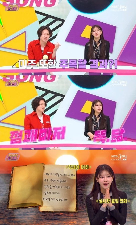 바로 다음날인 3일 방송된 KBS Joy '이십세기 힛-트쏭'에서 이미주는 신년 운세 결과에서 '결혼운'을 발견해 시선을 집중시켰다. 이미주는 지난해 4월 축구선수 송범근과의 열애 중이라고 인정한 바 있다.