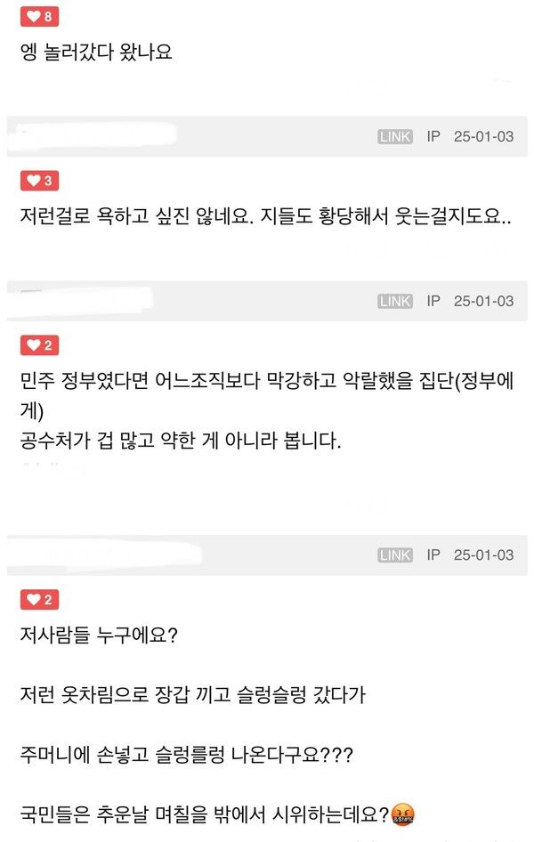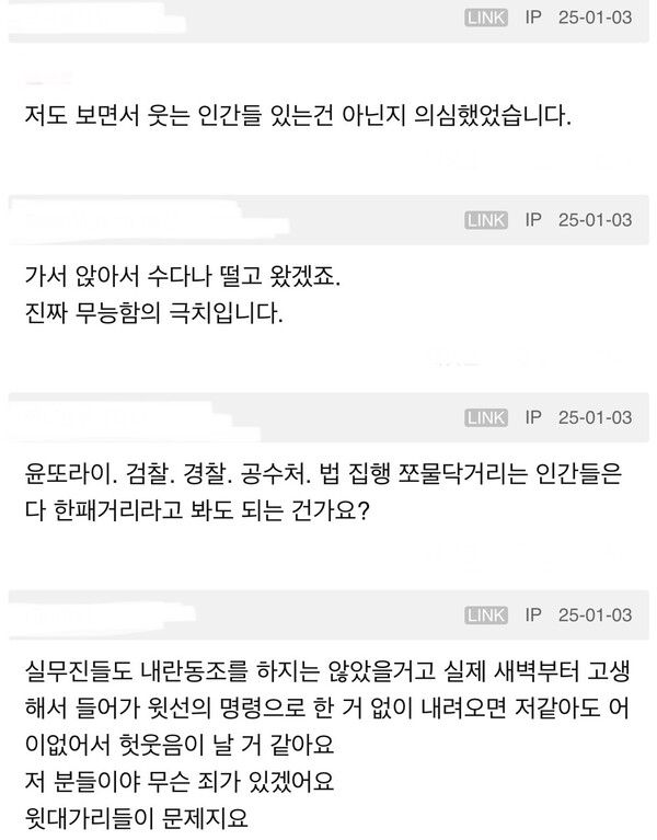 또 다른 누리꾼은 “현장 직원들은 내란 동조 의도가 없었을 것이고, 명령에 따라 움직였을 뿐”이라며 “정작 비판해야 할 대상은 지휘부”라고 지적했다.