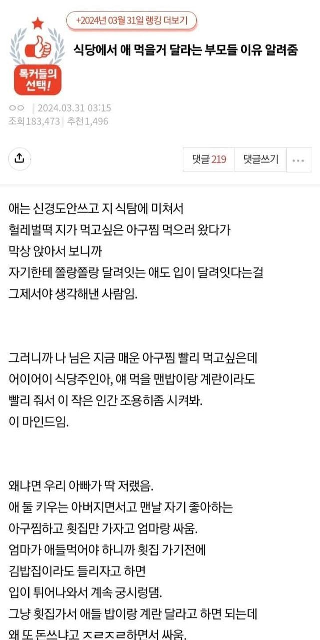 식당에서 애 먹을거 내오라는 진상 부모가 있는 이유