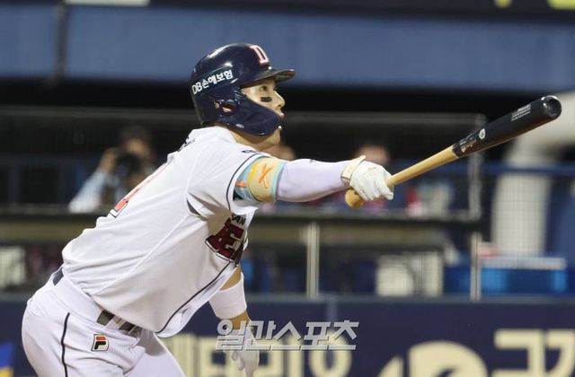 9월 23일 오후 서울 잠실야구장에서 열린 프로야구 SSG와 두산경기. 두산 조수행이 2회 1타점 2루타를 날리고있다. 잠실=정시종 기자 capa@edaily.co.kr