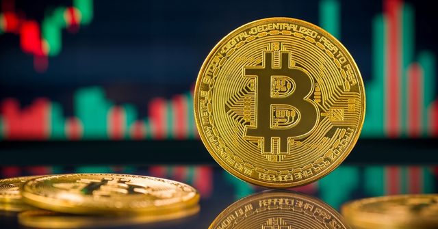 비트코인 기념 주화와 상승 그래프 / Yalcin Sonat-shutterstock.com