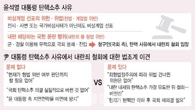 이에 법조계 일각에서는 내란을 빼고 심리해달라는 국회 측 주장은 조속한 헌재 결론을 유도하는 꼼수라는 지적이 나왔다.
