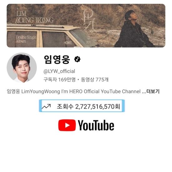 최근, 임영웅의 공식 유튜브 채널인 '임영웅'은 총조회수 27억 2천만 뷰를 돌파했다.