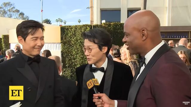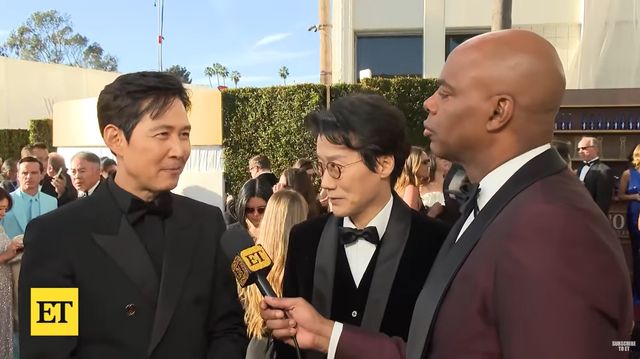 이정재와 황동혁 감독은 5일(현지시간) 미국 LA 배벌리 힐튼 호텔에서 펼쳐진 제82회 골든글로브 시상식 레드카펫 행사에 참석해 엔터테인먼트 투나잇(ET)과 인터뷰를 진행했다.