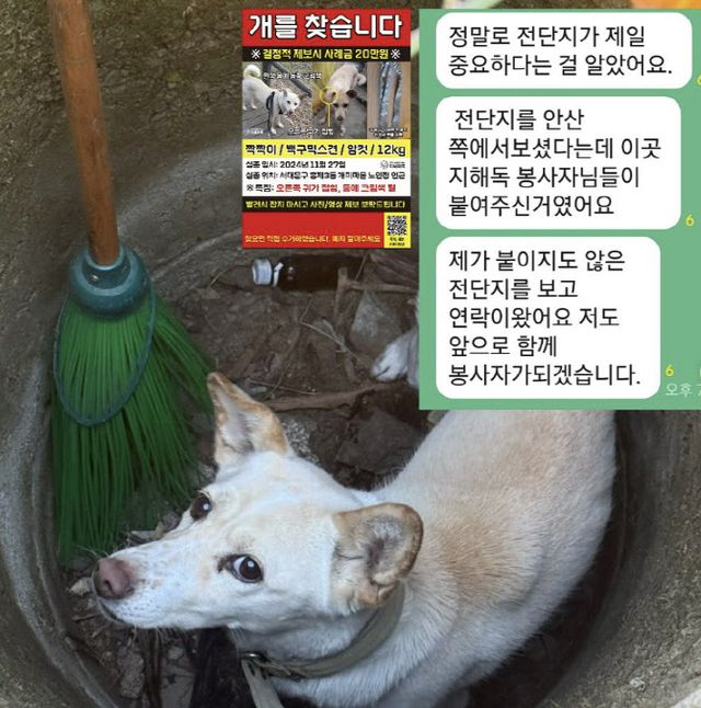 A씨는 반려동물 무료 구조 봉사 모임 ‘지해피독’에 도움을 요청했다. 지해피독은 반려동물을 잃어버린 보호자를 위해 실종 전단지를 제작해 주고, 지역 봉사자들에게 정보를 공유해 빠른 시간 안에 반려견을 찾을 수 있도록 돕는 단체다.