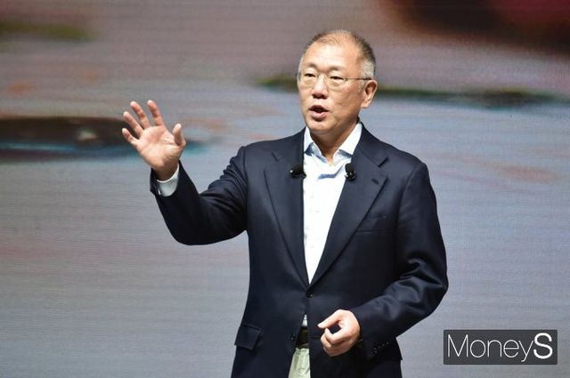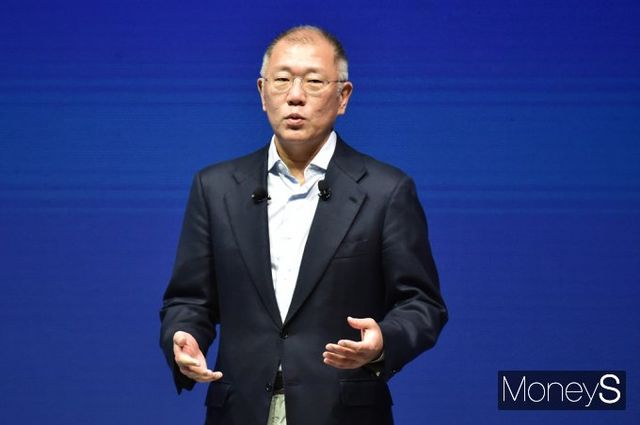 정의선 현대차그룹 회장이 6일 경기 고양시 일산서구 대화동 현대모터스튜디오 고양에서 진행된 '2025년 현대자동차그룹 신년회'에서 고객 가치를 최우선으로 지속 성장하자는 내용의 신년사를 전하고 있다.