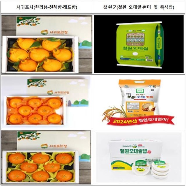 서귀포시는 이번 교류 품목으로‘서귀포in정’에서 엄선한 겨울 제철 만감류 한라봉, 레드향, 천혜향을, 철원군은 강원도지사 인증 농수특산물인 철원 오대쌀(햅쌀) 및 간편식 즉석밥과 함께 최근 잡곡밥을 선호하는 트렌드를 반영해 철원 오대현미를 추가 선정했다.