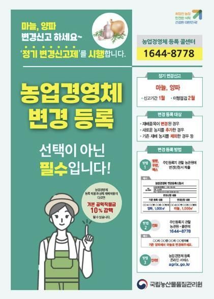 국립농산물품질관리원 안성사무소 '농업경영체, 양파·마늘 변경사항 신고하세요!'