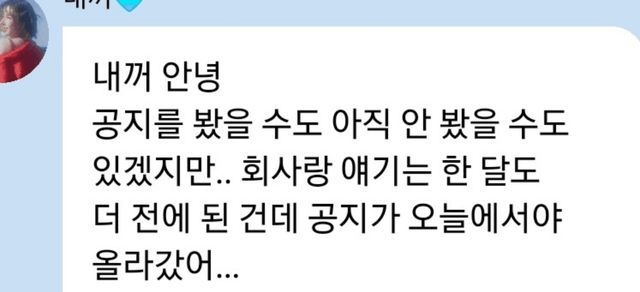 웬디는 "회사랑 얘기는 한 달도 전에 된 건데 공지가 오늘에서야 올라갔다"라고 아쉬움을 드러냈다.