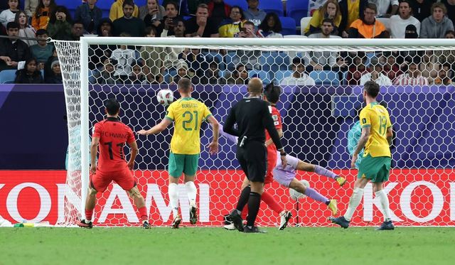 2024년 2월 2일(현지시간) 카타르 알와크라 알자누브 스타디움에서 열린 2023 아시아축구연맹(AFC) 카타르 아시안컵 8강전 호주와 대한민국의 경기에서 손흥민의 프리킥골이 들어가고 있다 / 뉴스1