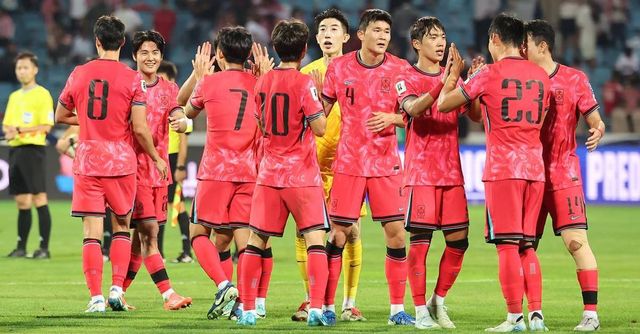 2024년 10월 10일(현지시간) 요르단 암만 국제경기장에서 열린 2026 국제축구연맹(FIFA) 북중미 월드컵 아시아 3차 예선 B조 3차전 대한민국과 요르단의 경기에서 2-0으로 승리를 거둔 대한민국 선수들이 하이파이브를 하고 있다 / 뉴스1