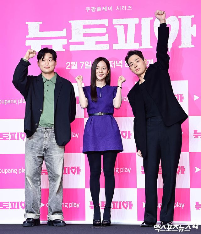 7일 오전 여의도 모처에서는 쿠팡플레이 시리즈 '뉴토피아' 제작발표회가 열렸다. 현장에는 박정민, 지수(블랙핑크), 윤성현 감독이 자리했다.