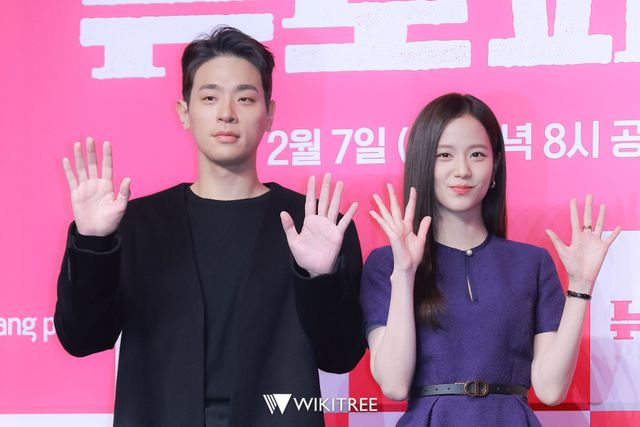 7일 오전 콘래드 서울 그랜드볼룸에서 '뉴토피아' 제작발표회가 진행됐다. 제작발표회에 참석한 배우 박정민, 지수가 포즈를 취하고 있다.