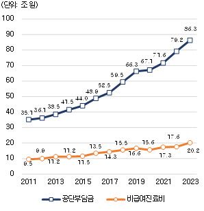 비급여를 포함한 총 진료비는 약 133조원으로 전년(120조 6000억원)보다 10.3% 늘었다. 이중 보험자부담금은 86조 3000억원, 법정 본인부담금은 26조 5000억원, 비급여 진료비는 20조 2000억원으로 추정된다.