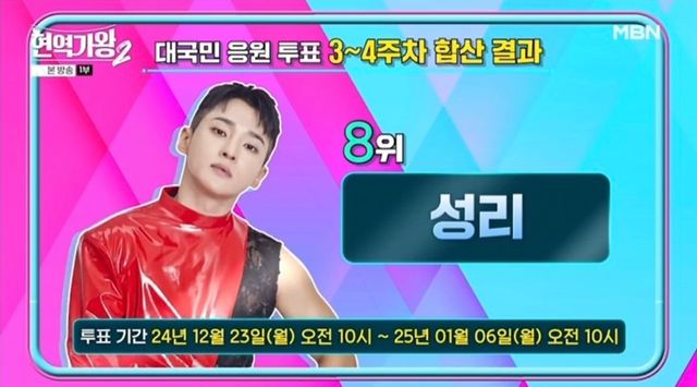 (엑스포츠뉴스 명희숙 기자) 각수 성리가 '현역가왕2' 대국민 응원투표 TOP 10에 첫 진입했다.