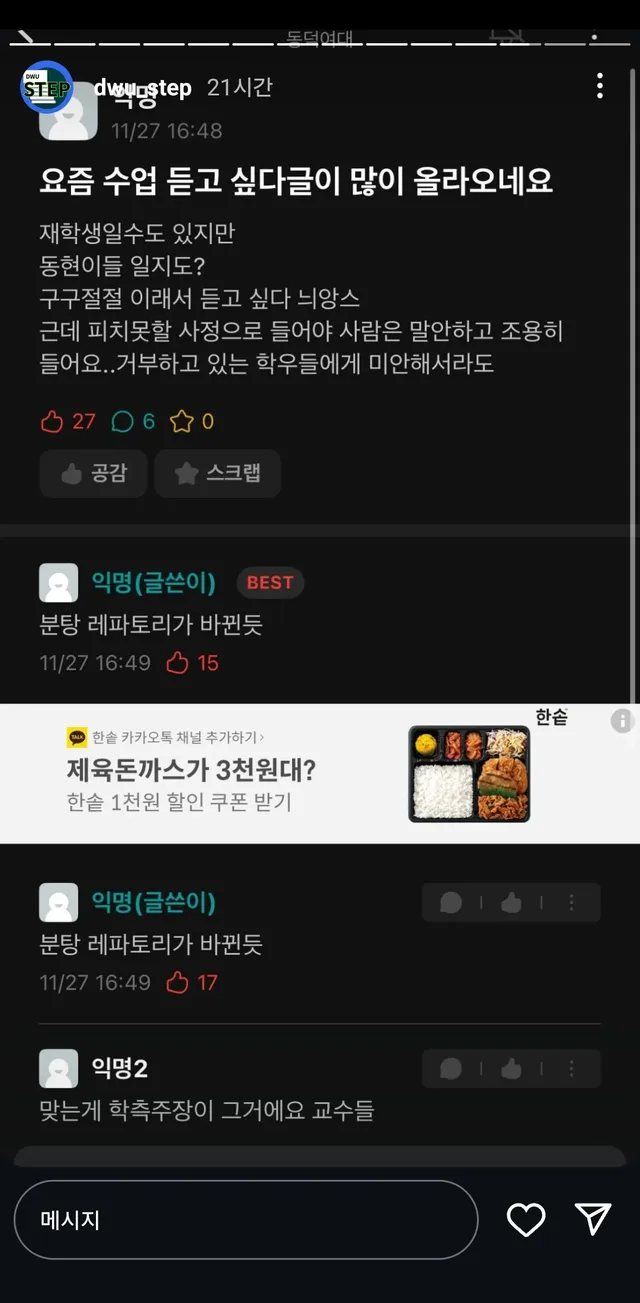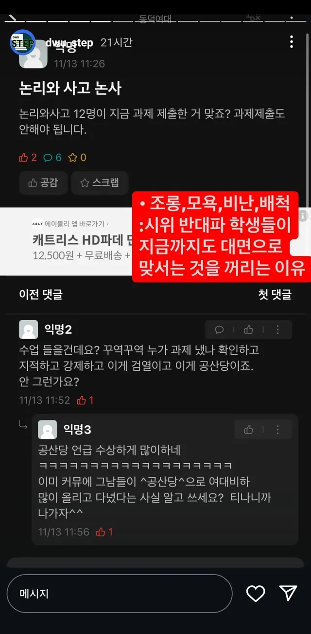페미들이 Dm으로 욕박고 있나 싶던 와중에
